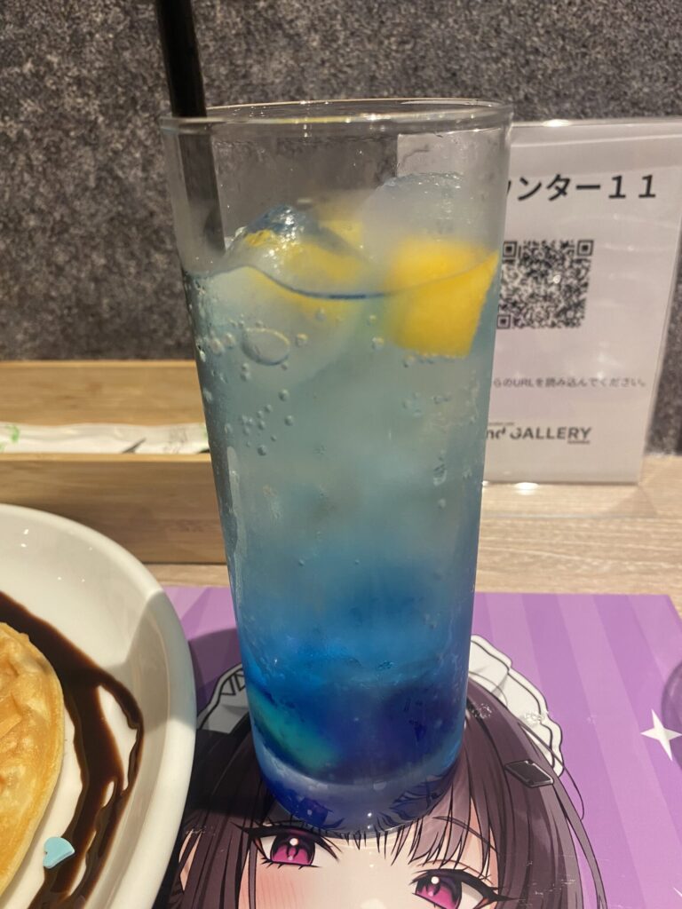 ドリンクはどれにしようか迷ったのですが、ワッフルが甘いだろうと見越してさっぱりしてそうなソーダを選びました。