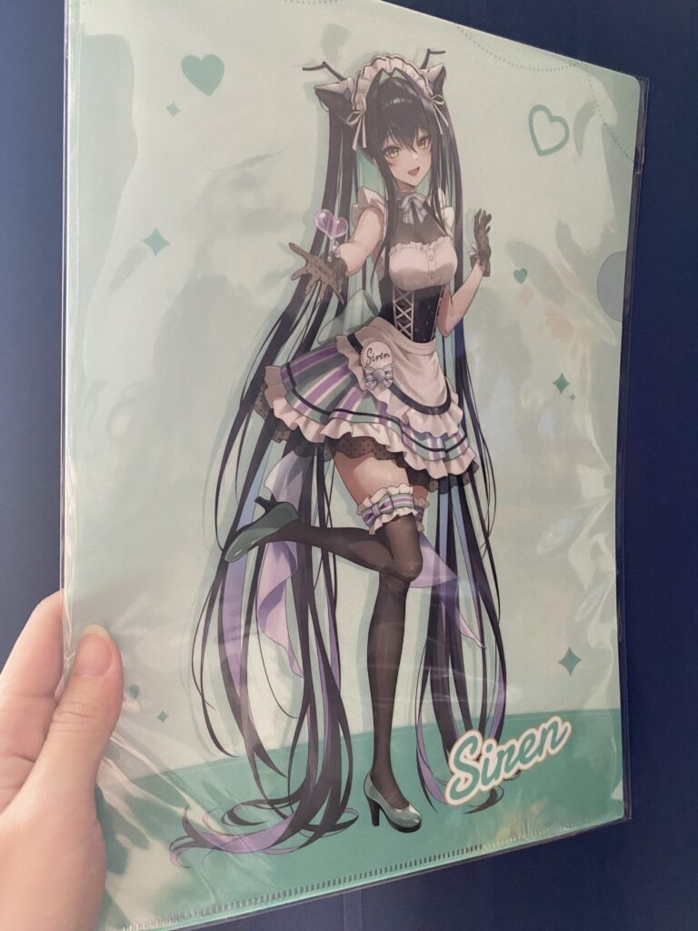 私は等身大キャラ全員のメイド服のデザイン(特にリトルマーメイドのデザイン)がめちゃくちゃ好きなので、等身大全キャラverとリトルマーメイドのクリアファイルを購入しました。